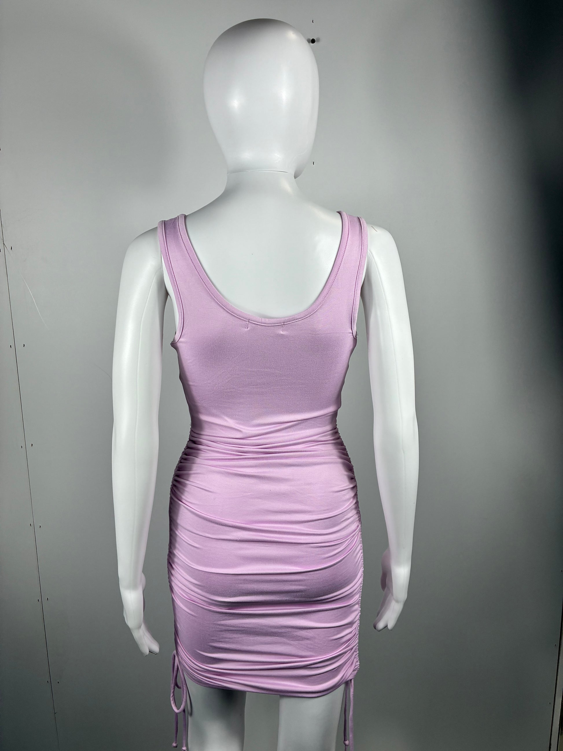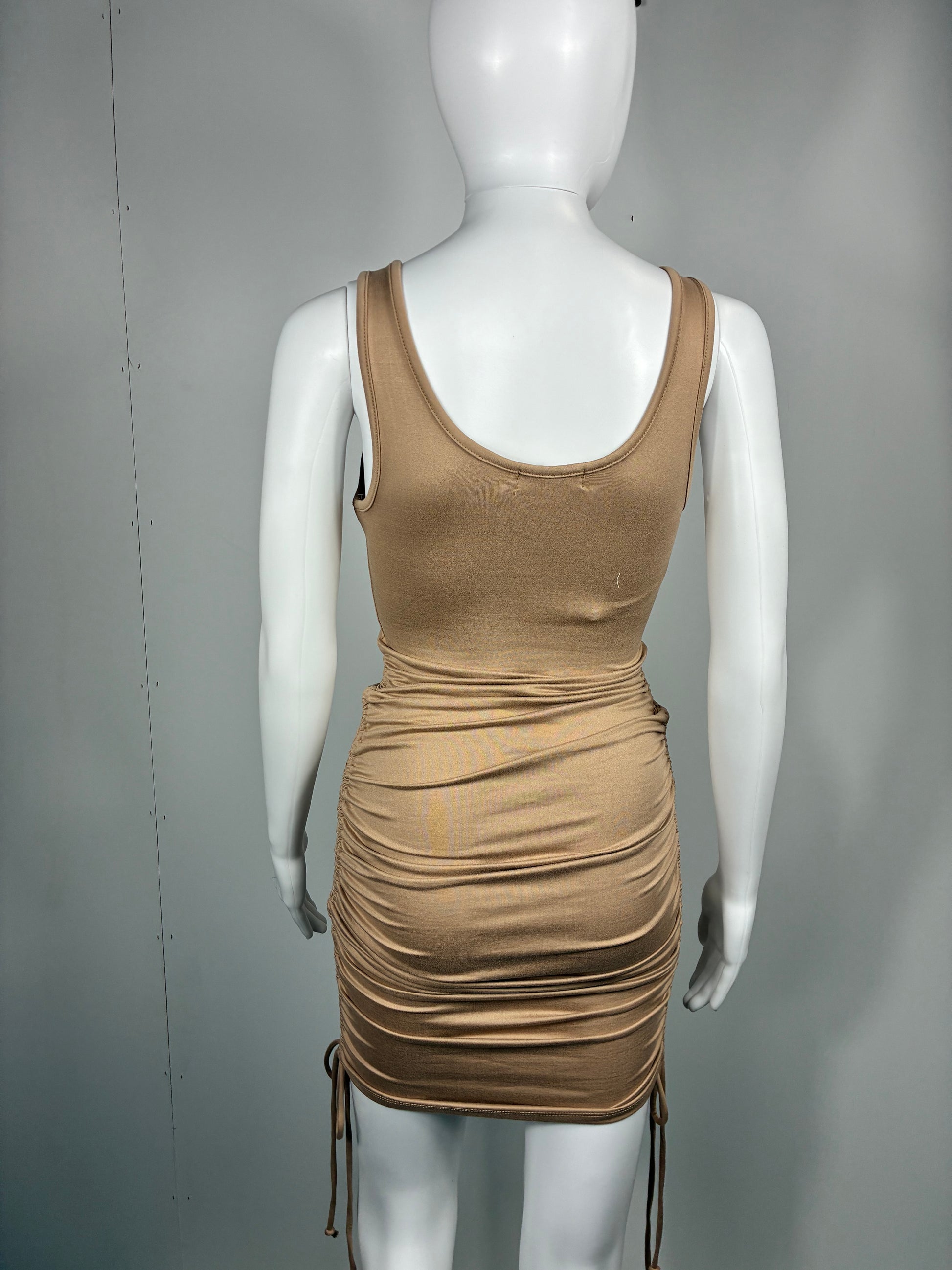 This black sleeveless ruched dress offers a sophisticated silhouette with gathered detailing that enhances natural curves while providing a flattering fit. Its sleeveless design allows ease of movement and is ideal for layering or wearing alone, making it versatile for formal events or elegant evenings. Crafted to combine style and comfort, this dress is a timeless addition to any wardrobe.