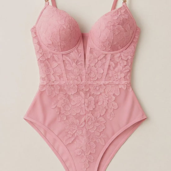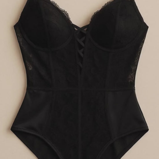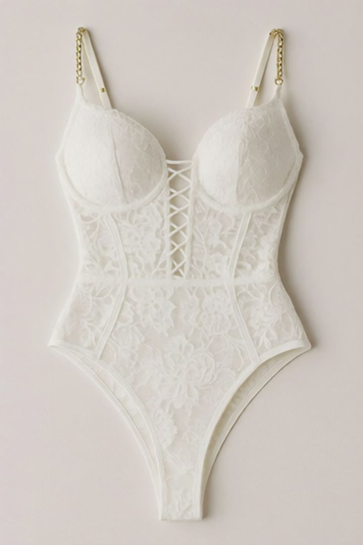 This Lace Bodysuit, adorned with elegant gold accessories, blends delicate craftsmanship with a touch of luxury. The intricate lace provides a sophisticated silhouette, while the gold accents add a refined shimmer, making it ideal for special occasions or layering under statement pieces. Designed for a flawless fit, it enhances your natural shape with expert precision and timeless style.