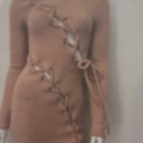 The lace-Up Knit Sweater Dress offers a sophisticated blend of style and comfort, featuring expertly crafted knit fabric that provides both warmth and flexibility. Its distinctive lace-up detail adds a modern, tailored touch while allowing subtle adjustability for a personalized fit. Ideal for layering or wearing alone, this dress delivers polished versatility suitable for professional and casual occasions. Designed for durability and ease of care, it’s a refined choice for those seeking a stylish yet functional wardrobe staple.