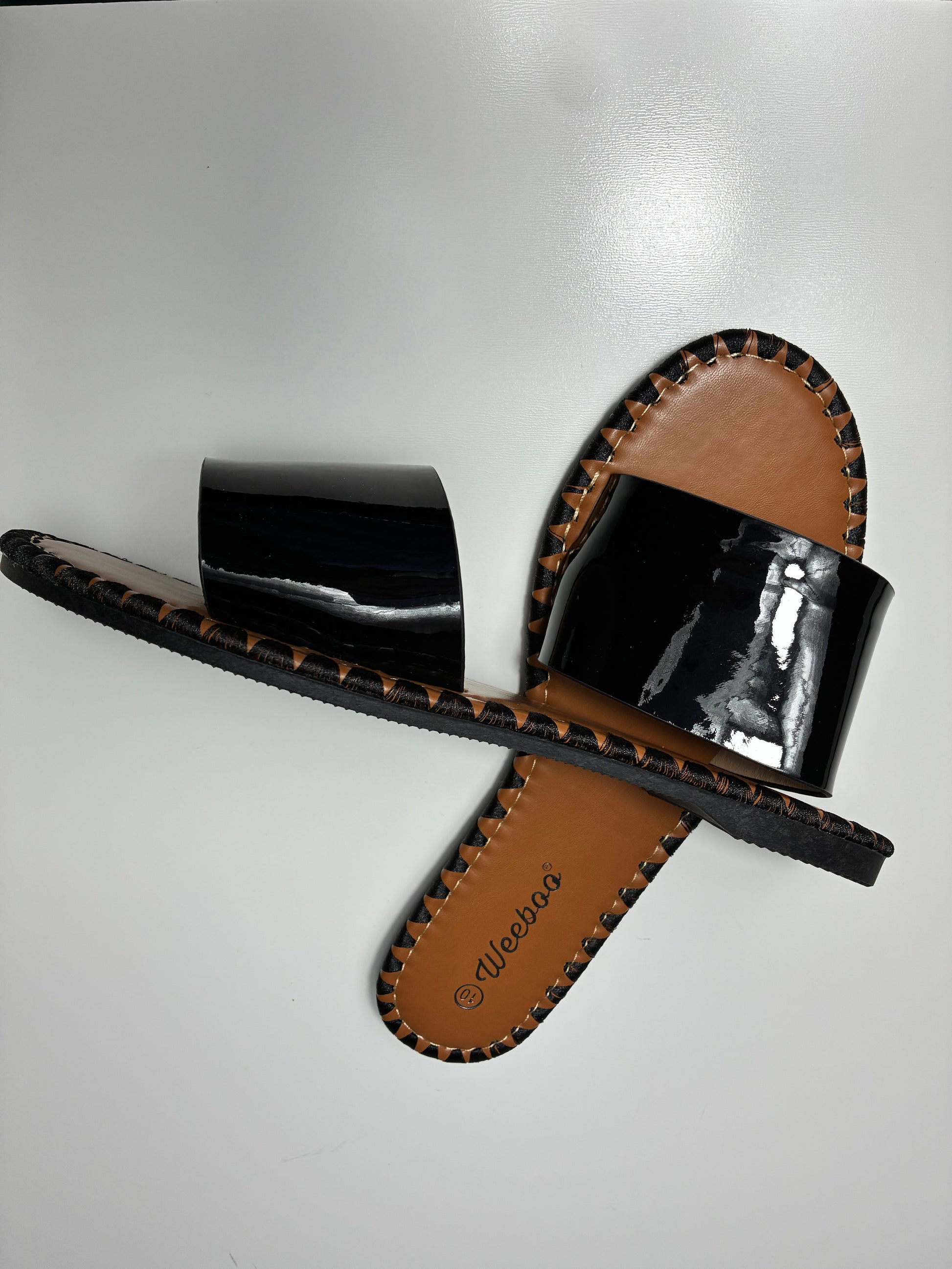 Elevate your warm-weather footwear with these striking metallic patent slide sandals. Crafted with a lustrous finish that catches the light, these slides deliver effortless style for any occasion—from casual outings to poolside gatherings. The sleek silhouette and reflective surface create a modern aesthetic that pairs seamlessly with summer dresses, shorts, or athleisure looks. Designed for comfort and durability, these sandals offer the perfect balance of sophistication and practicality. A versatile essential that transforms any ensemble with minimal effort.